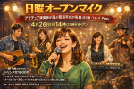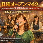 演奏者の方へ、演奏曲は4曲、20分以内です(当日の状況により変化します、当方操作必要なカラオケ音源の場合は3曲迄でお願いしています。
