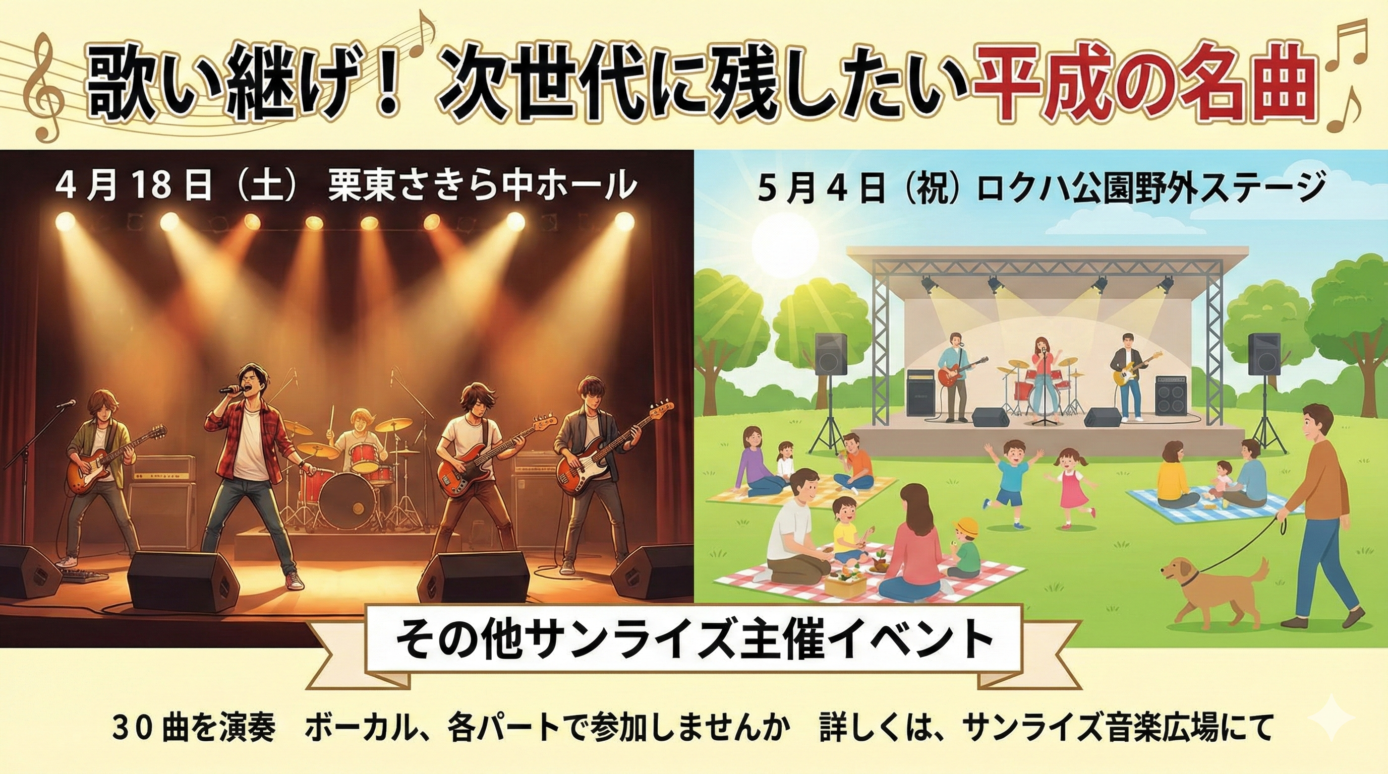 歌い継ぐ昭和平成の名曲や詳細等については、サンライズ音楽広場にお越しください。