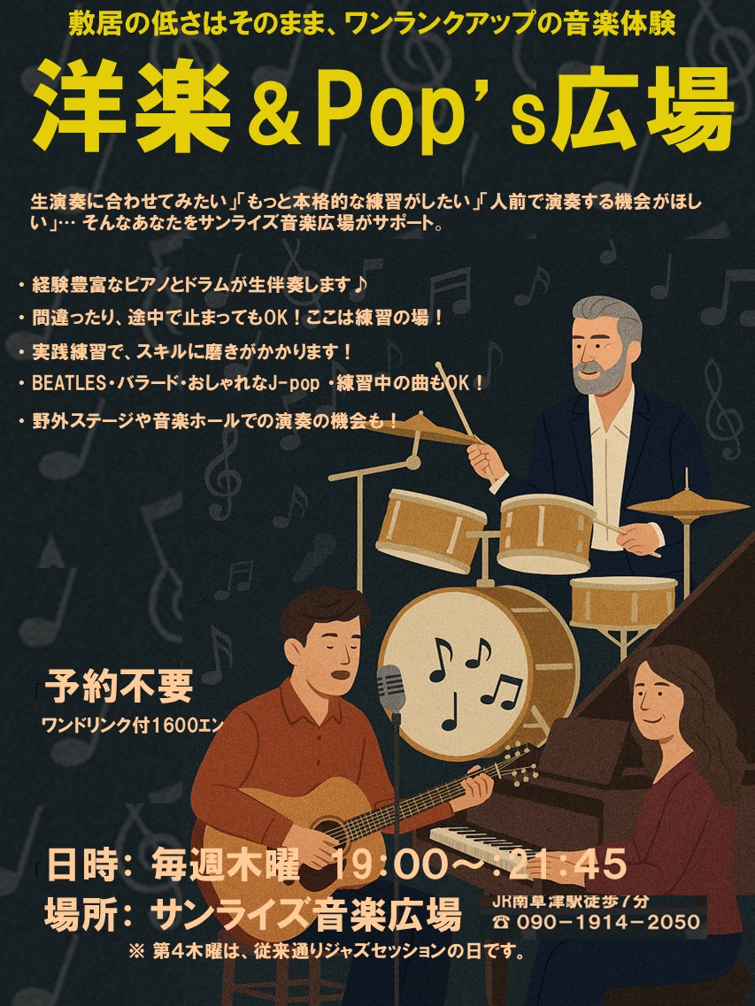 ◆ボーカル又はインスト歓迎!なんちゃってセッションも(ピアノとドラムが常駐)